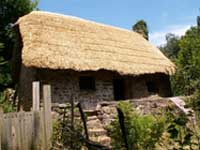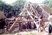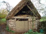 The construction of Cowshed at Grayhill Historical farm, one of 10 stone buildings on the site. This building involved stone and wattle and daub walls, thatched roof and was fitted out with oak stalls with hand forged iron fittings (below).